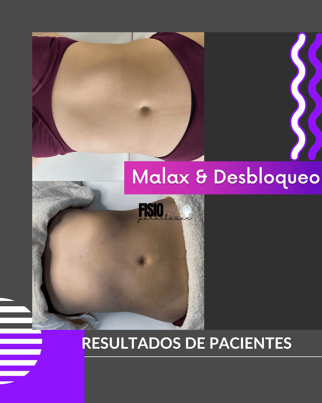 Deshace adherencias y prepara el cuerpo, desinflamando, previniendo y tratando el estreñimiento para lograr un abdomen plano. Utilizando métodos manuales, de maderoterapia y con percutor, mejorando la calidad de resultados del marcaje.